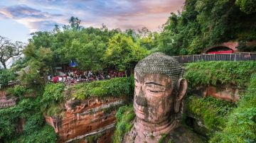 抵達樂山大佛後,體驗乘船在江上船遊觀看彌勒坐佛-樂山大佛的全身全貌【含體驗-含船票】,樂山大佛通高71米,修建於唐朝,親身體會“山是一尊佛,佛是一座山”的雄偉壯觀以及由烏尤山,凌雲山,龜城山三座山自然組合而成的巨型臥佛。